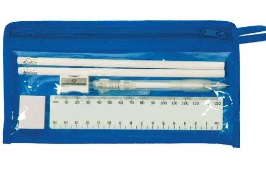 This stationery set features a durable clear case with a ballpoint pen rulers an eraser and a pencil sharpener. The branding of your logo goes onto the actual pouch. Item total size measures 22x12cm. Displayed price includes a 1 colour print of your logo. A print set up of $75 applies for branding. The turnaround time for this product is 2 weeks. If you needed the product quicker please email us. Pricing excludes GST. All orders will have a graphical mock up for your approval prior to branding production. Graphic design to redraw your logo from a jpeg is available for a small additional cost. You can keep the final results for reorders with us or with anyone else. We deliver right around Australia for this product only. To brand your logo please supply your artwork in an EPS or PDF format saved with editable outlines.